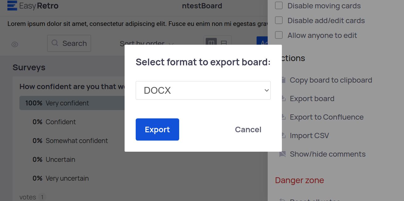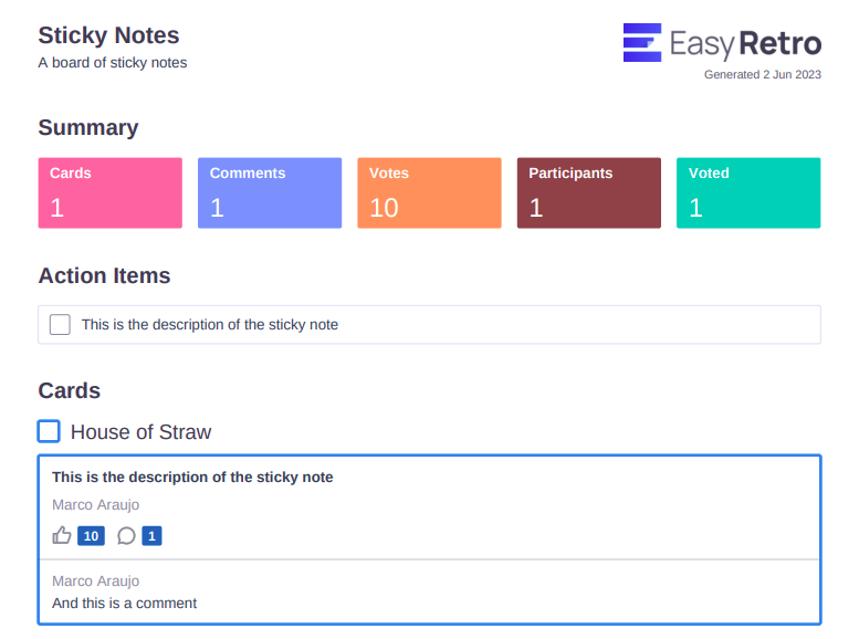 You can now export your EasyRetro organization's boards and team members to TXT format!