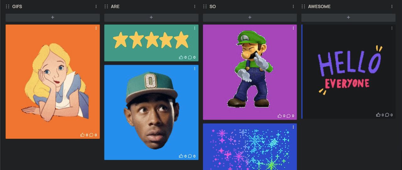 GIFs are now avaiable, make sure to enable it when creating a new board or check the option in the sidebar: