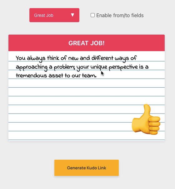 Now you can easily create a Kudo card with a "thanks" message to show your teammates they are appreciated!